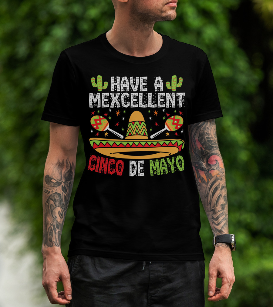 Cinco De Mayo Have A Mexcellent Sombrero Maracas Cactus T-Shirt