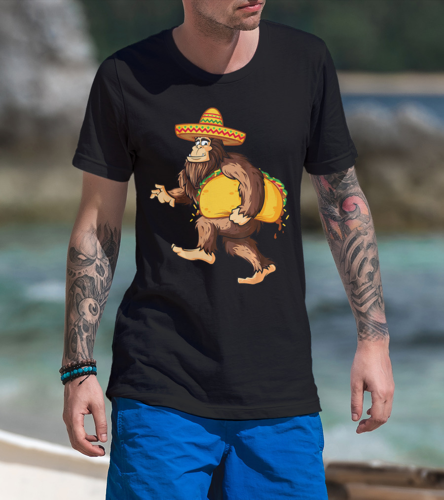Funny Bigfoot Cinco De Mayo Sombrero Taco Carrying T-Shirt