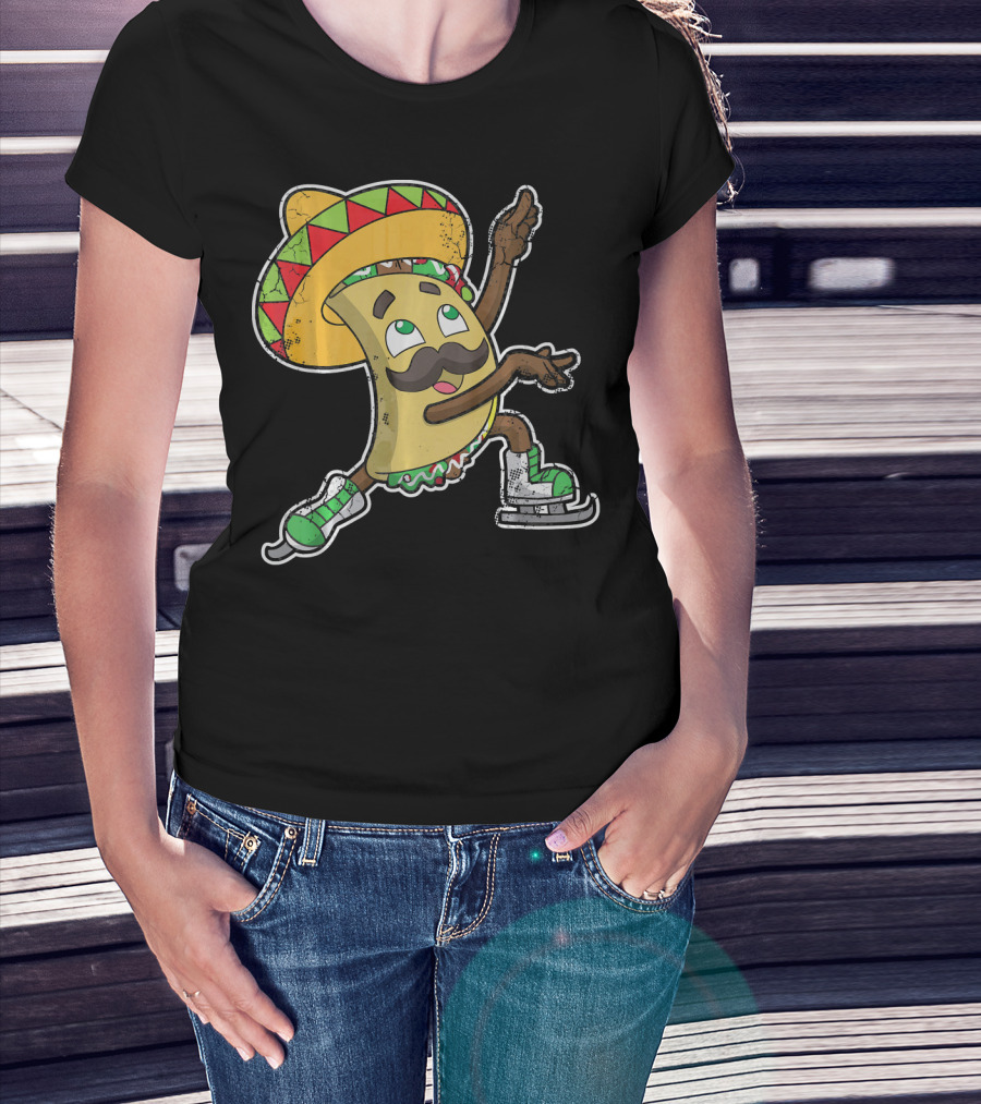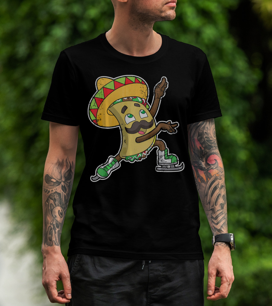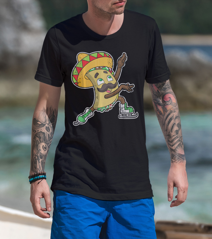 Taco Ice Skating Sombrero Cinco De Mayo T-Shirt