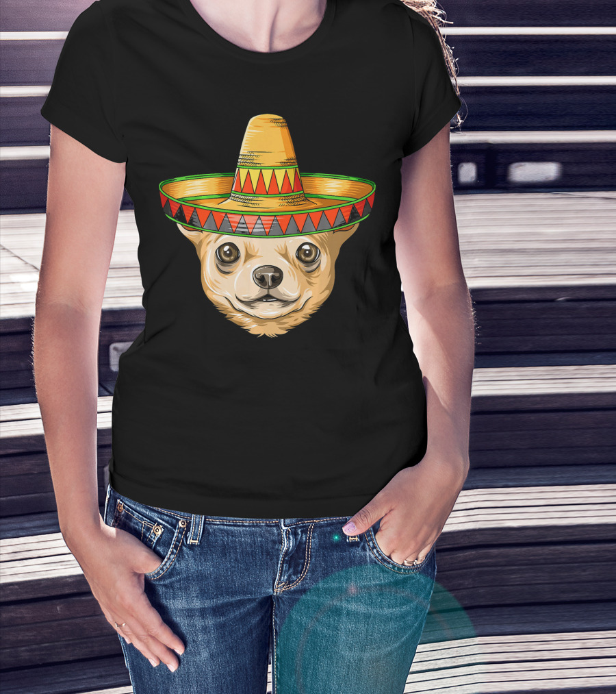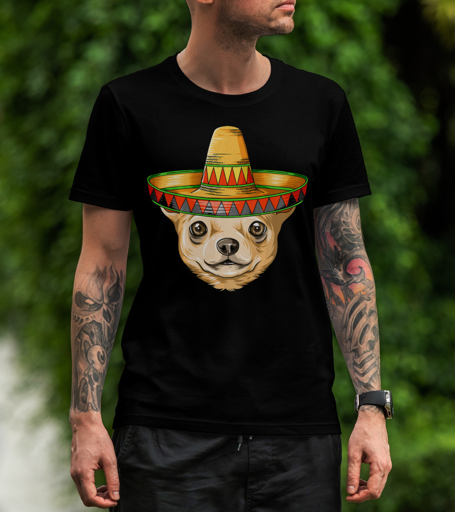 Chihuahua Wearing Mexican Sombrero For Cinco De Mayo T-Shirt