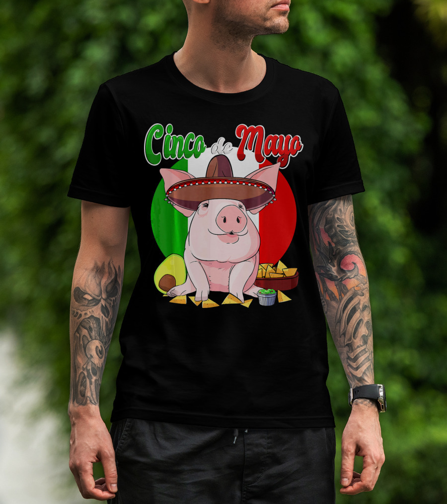 Cinco De Mayo Pig Sombrero Nachos Avocado Fiesta T-Shirt