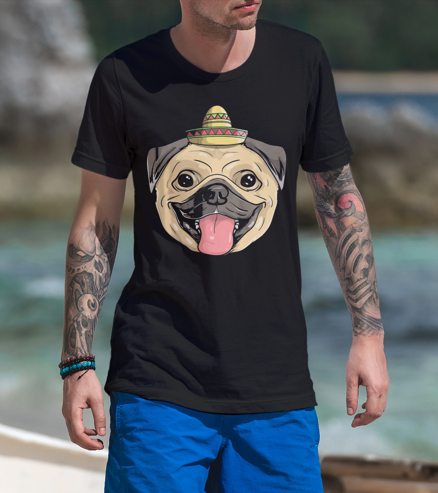 Fiesta Pug Dog Sombrero Cinco De Mayo T-Shirt