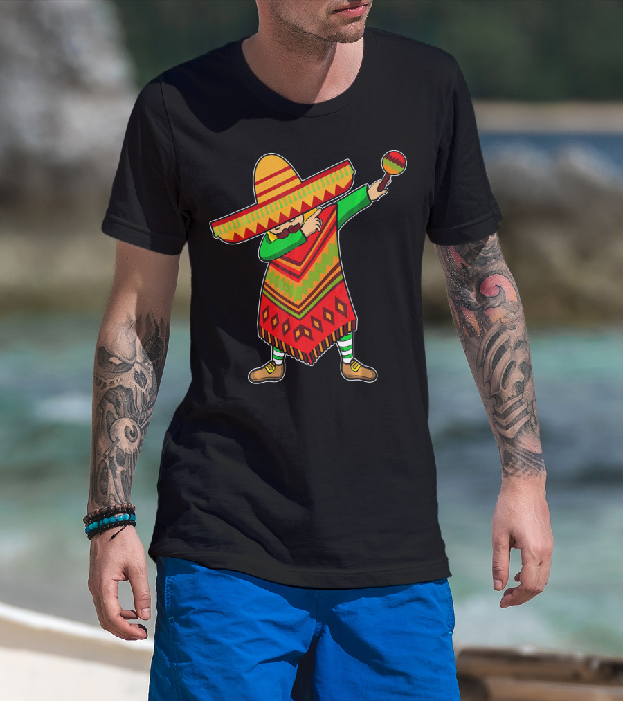 Cinco De Mayo Sombrero Poncho Dab With Maraca T-Shirt