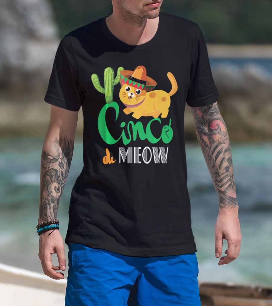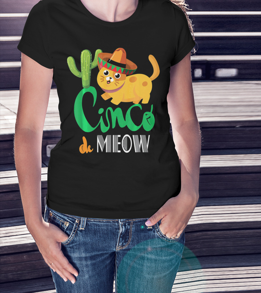 Cinco De Meow Cat Cactus Sombrero Mexico Cinco De Mayo T-Shirt