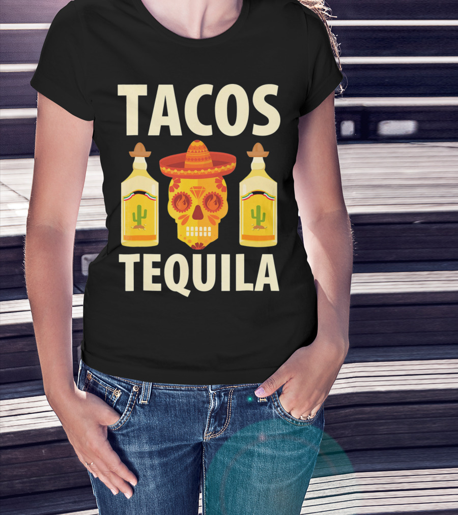 Cinco De Mayo Tacos Tequila Skull And Bottles T-Shirt