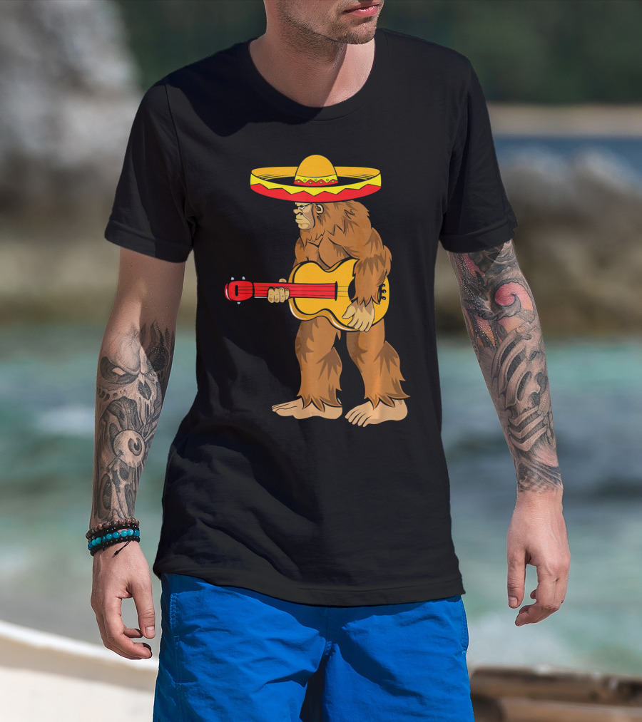 Bigfoot Carrying Guitar Cinco De Mayo Sombrero T-Shirt