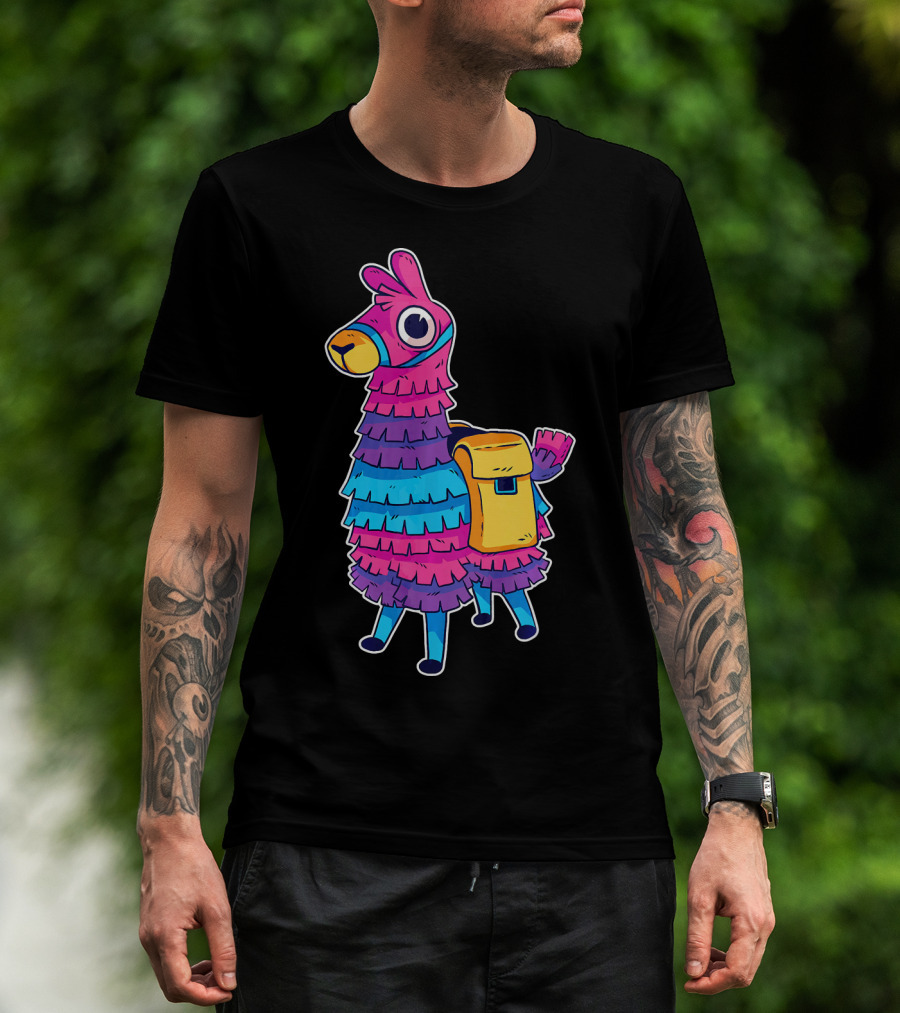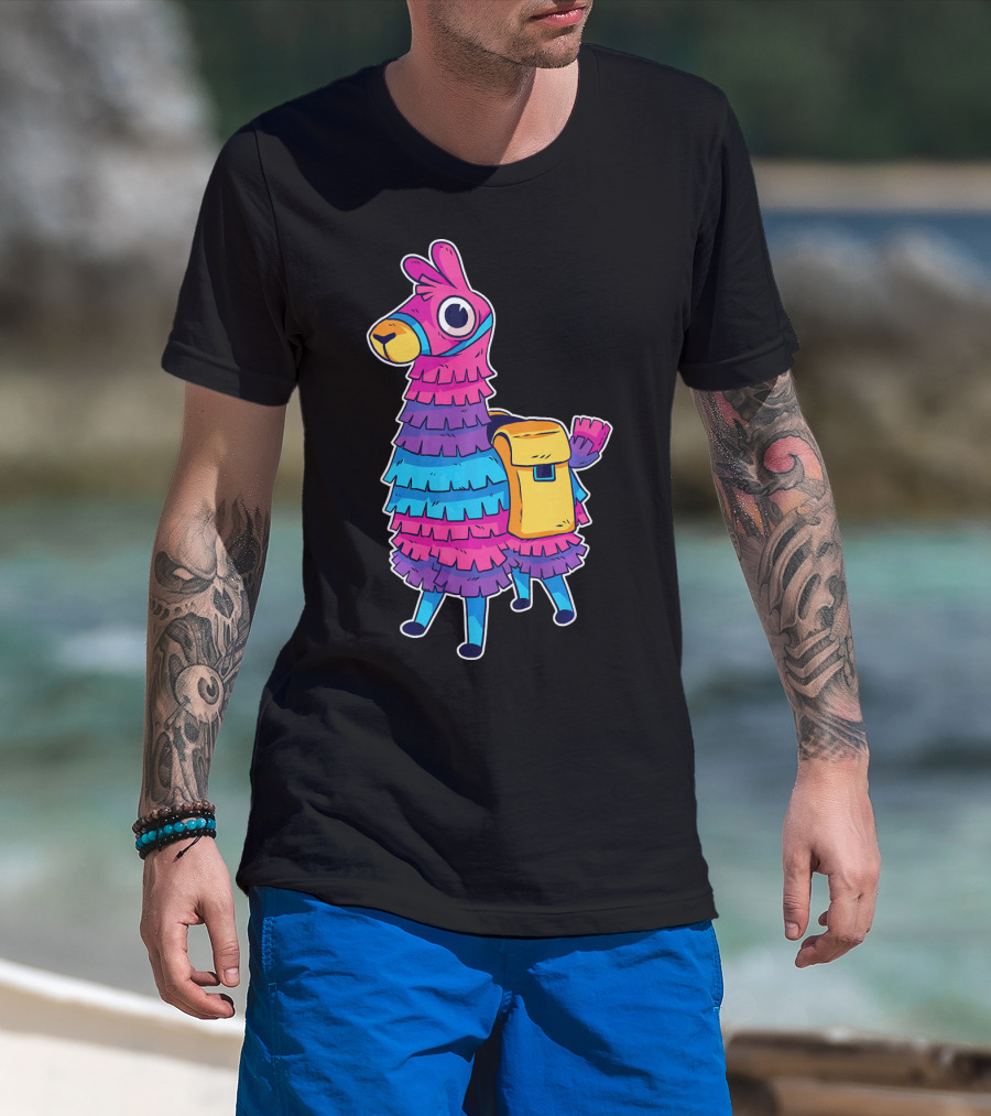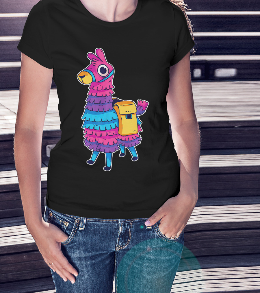 Llama Pinata Funny Festive Fiesta Party With Colorful Backpack T-Shirt