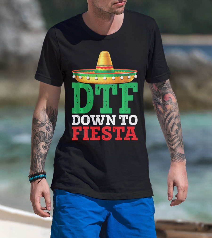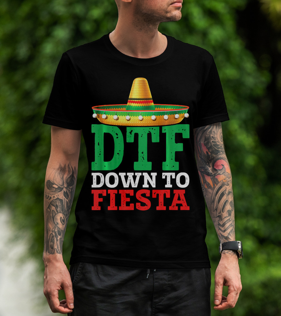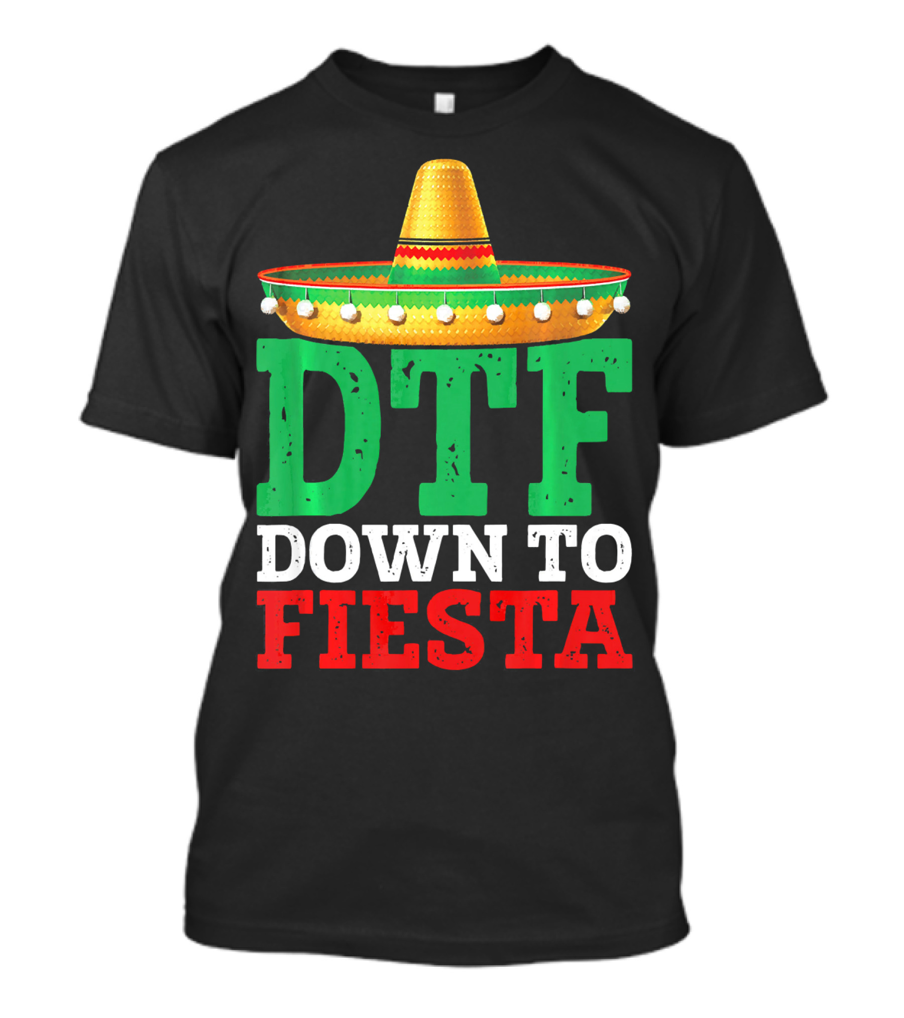 The Cinco De Mayo Sombrero DTF Down To Fiesta T-shirt is designed for everyday wear and a consistent fit. Fabric is pre-shrunk ring-spun cotton with durable stitching. See the size chart below for exact measurements.