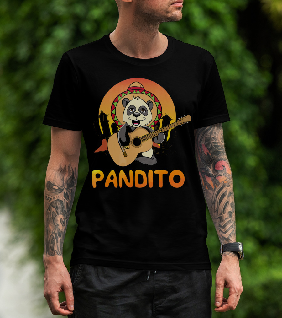 Pandito Funny Mexican Panda With Sombrero And Guitar Fiesta T-Shirt