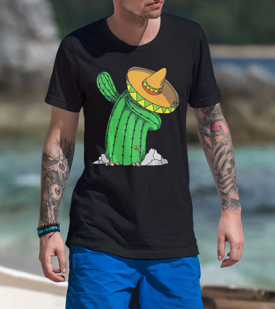 Cinco De Mayo Dabbing Cactus With Sombrero Fun T-Shirt