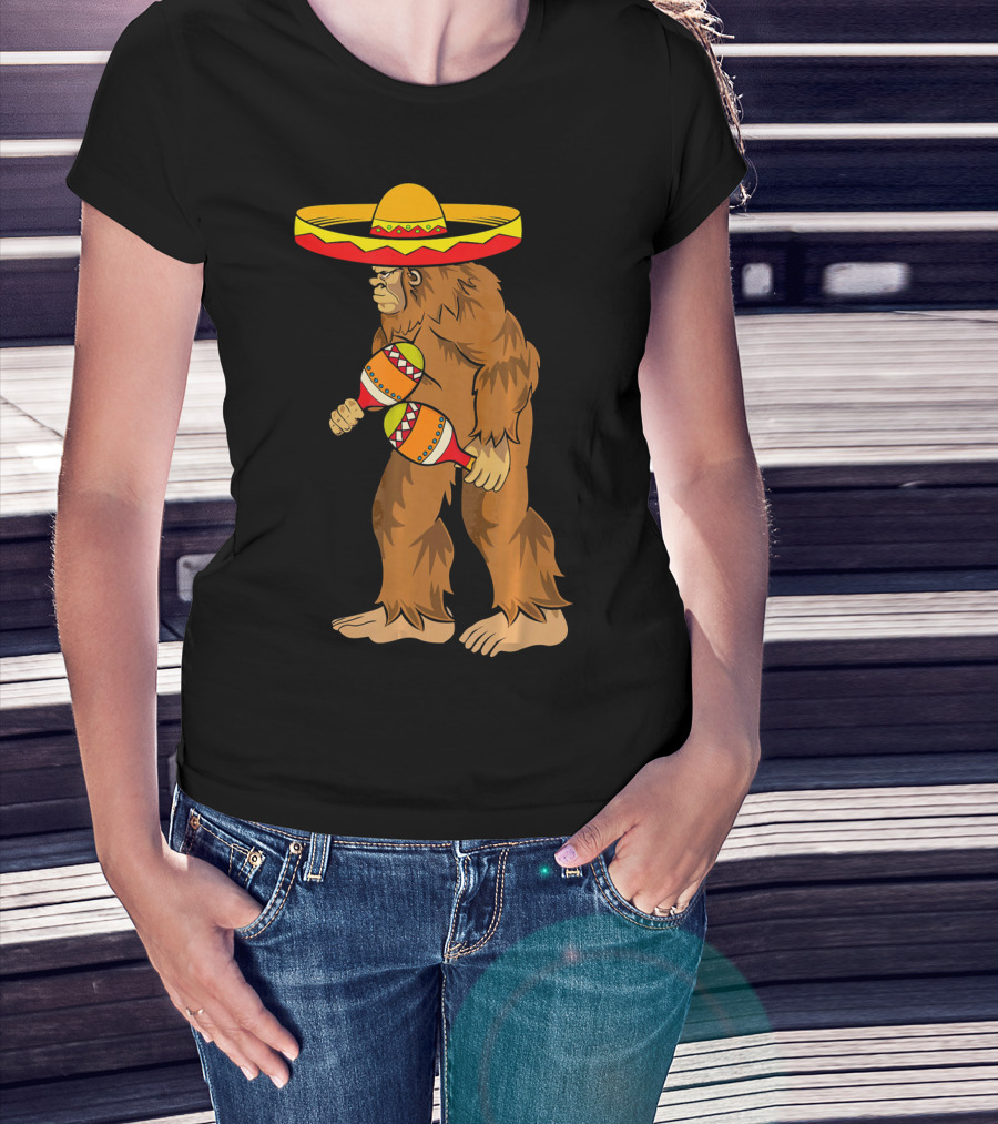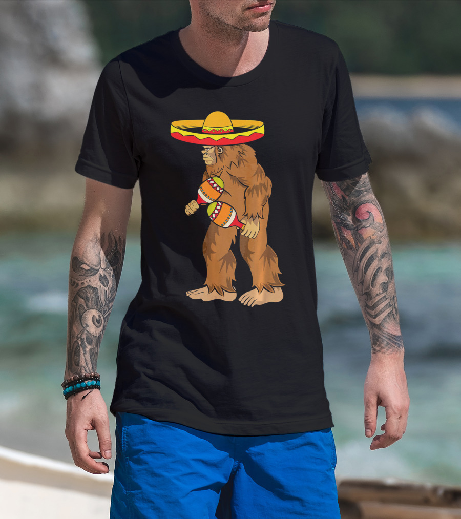 Bigfoot Sombrero Maracas Cinco De Mayo T-Shirt