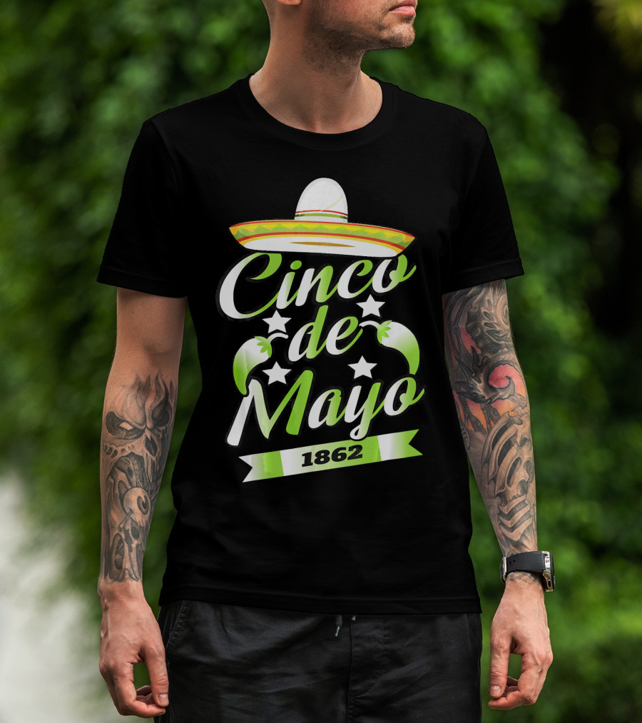 Cinco De Mayo 1862 Sombrero Mexican Cele Celebration With Stars And Sombrero T-Shirt