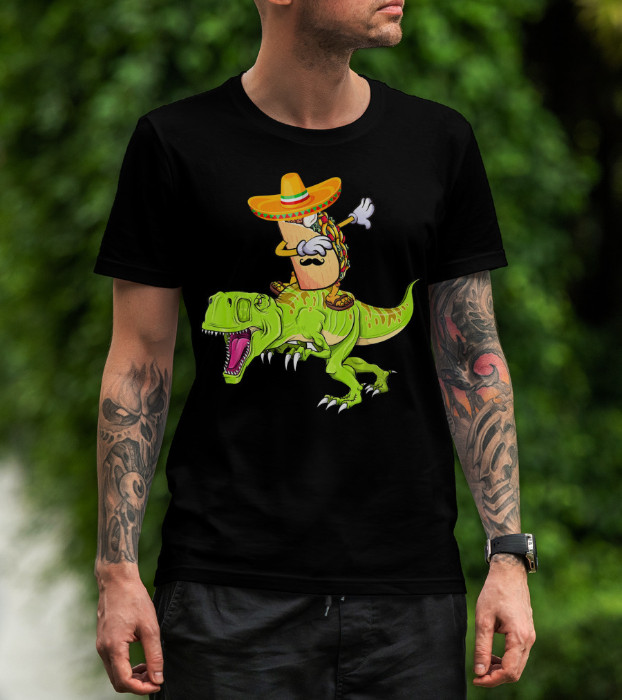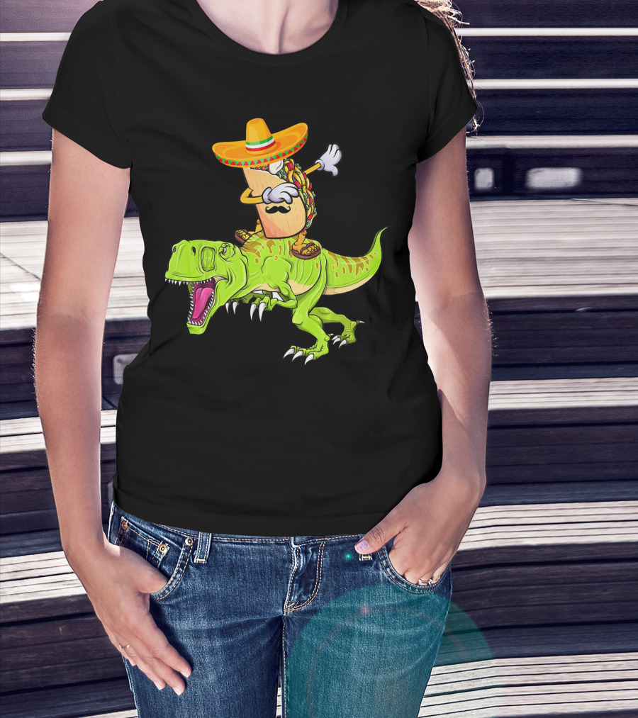 Dabbing Taco Sombrero On T-Rex Dinosaur T-Shirt