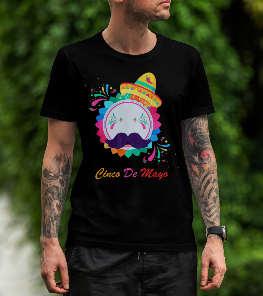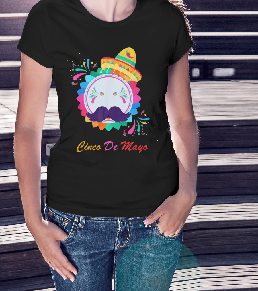 Cinco De Mayo Colorful Sombrero Mustache T-Shirt