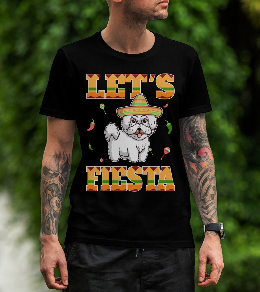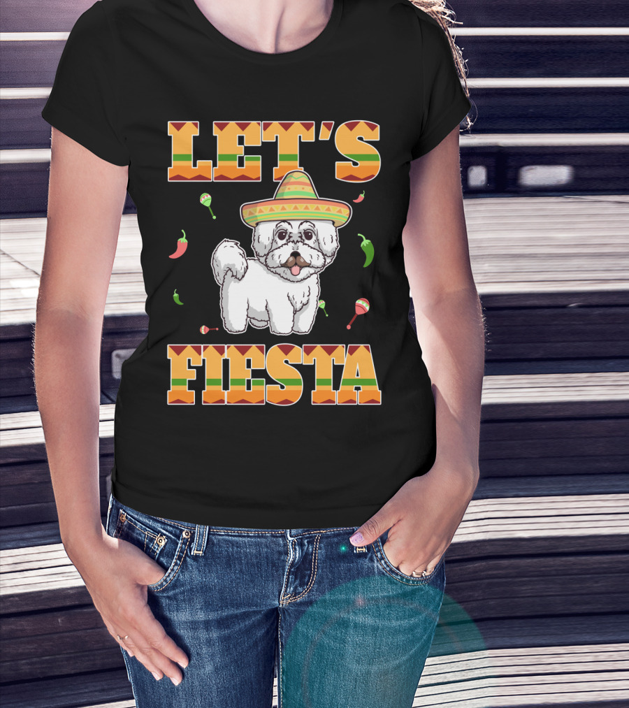 Let's Fiesta Bichon Frise Dog Cinco De Mayo Sombrero Peppers Maracas T-Shirt