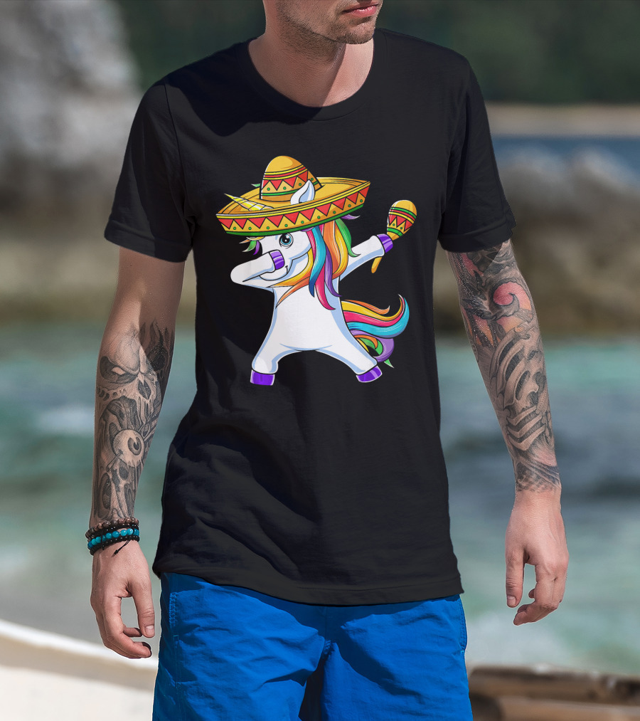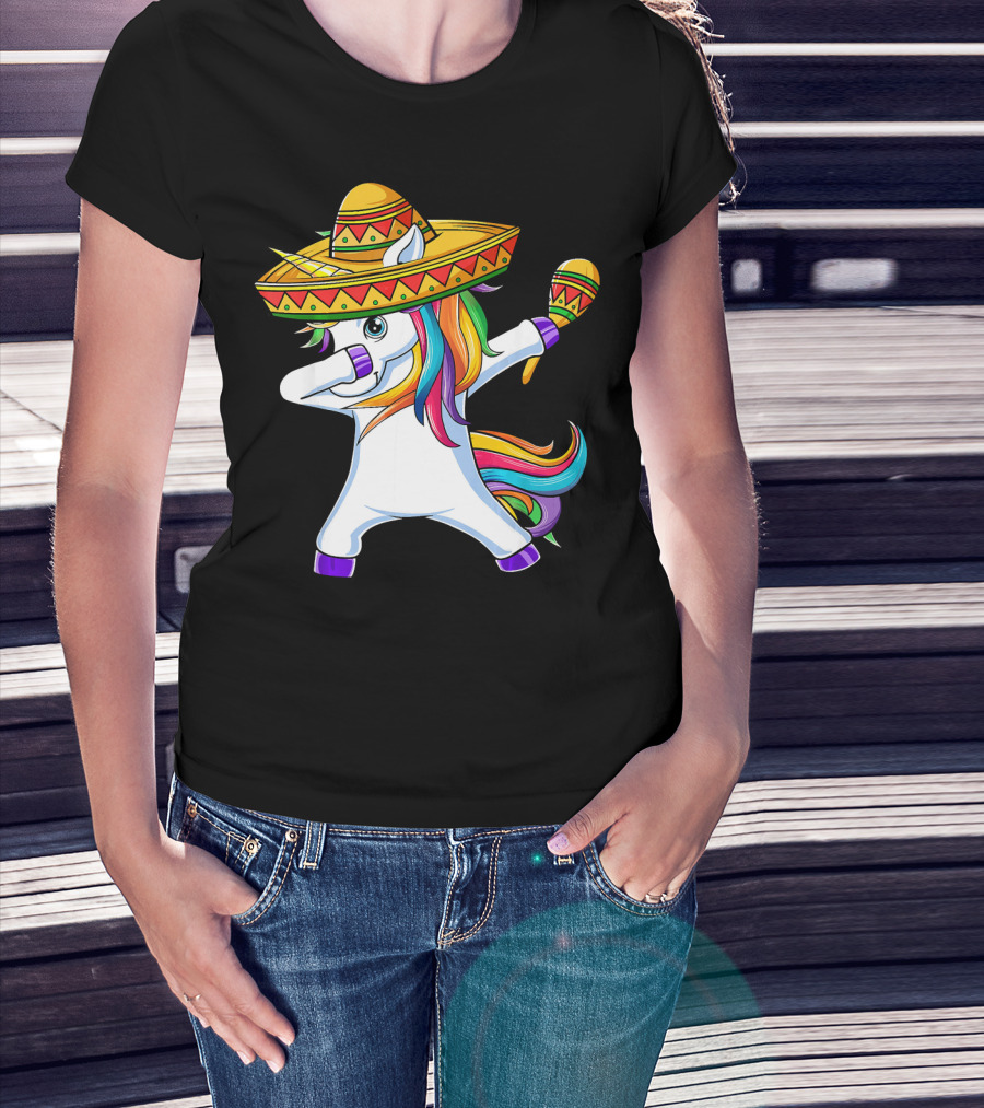 Dabbing Unicorn Cinco De Mayo Girls Sombrero And Maracas T-Shirt