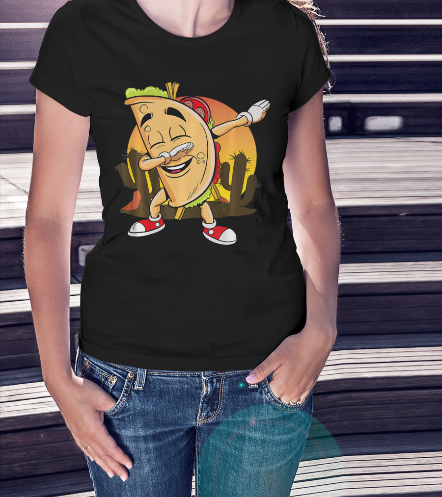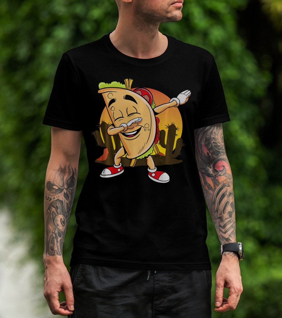Cinco De Mayo Mexican Dabbing Taco With Fiesta Cactus Sunset T-Shirt