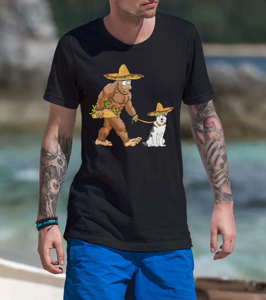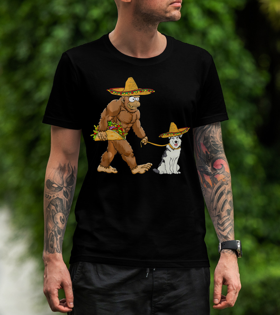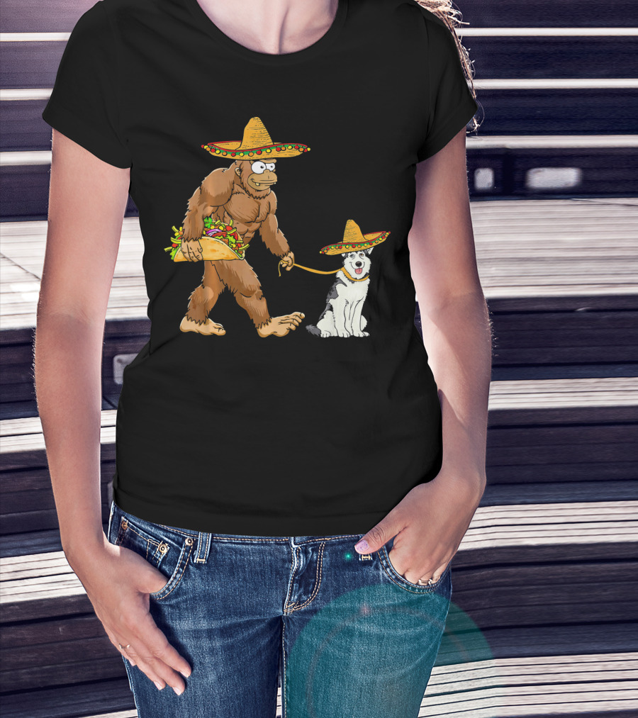 Bigfoot Husky Dog Taco Sombrero Cinco De Mayo T-Shirt