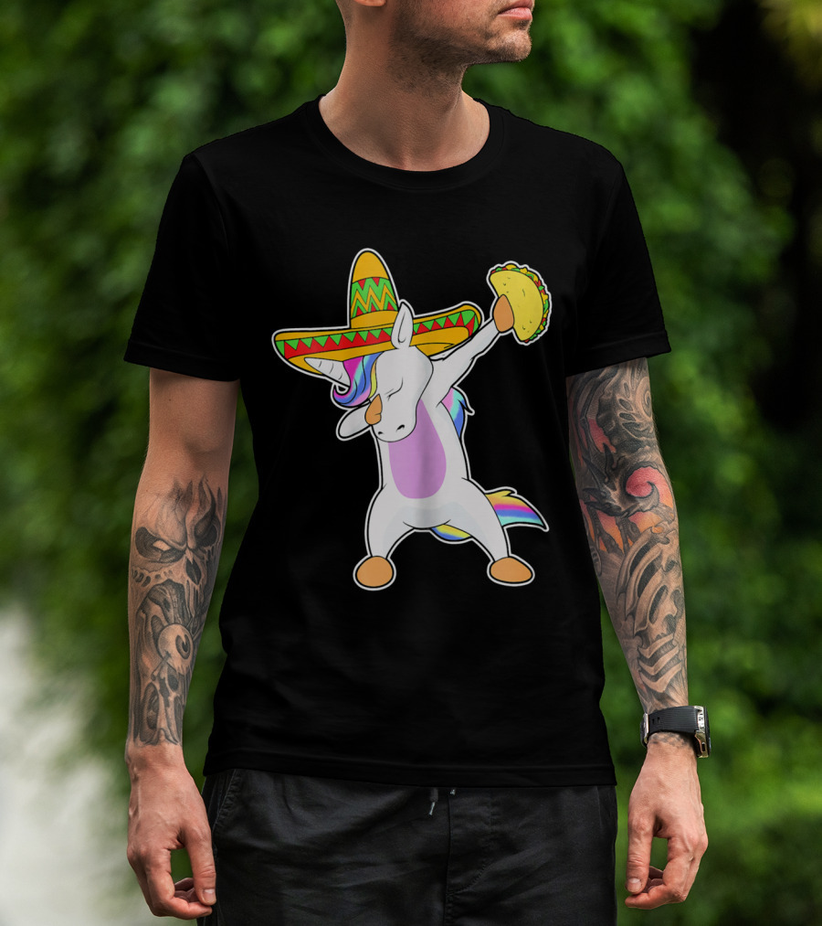 Funny Dabbing Unicorn With Taco And Sombrero Leveraging Cinco De Mayo Celebrations T-Shirt
