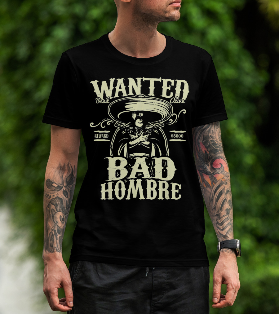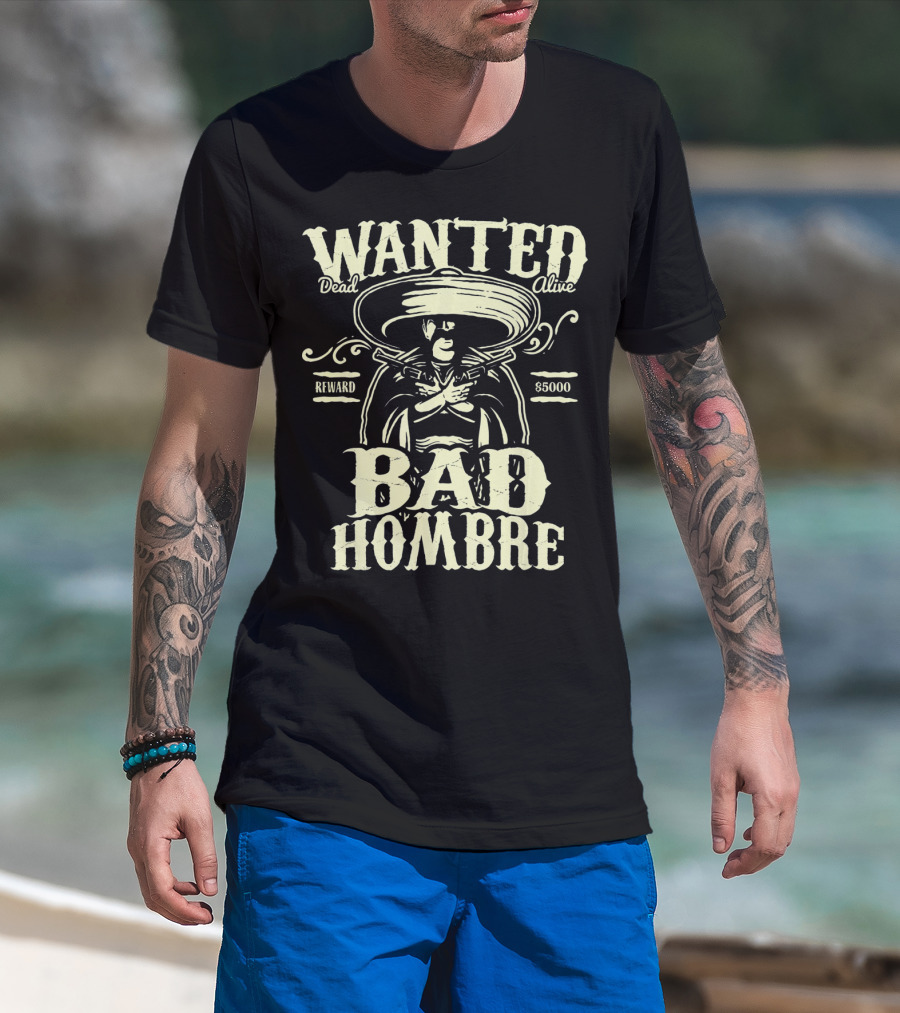 Wanted Dead Or Alive Bad Hombre Reward $5000 Cowboy T-Shirt
