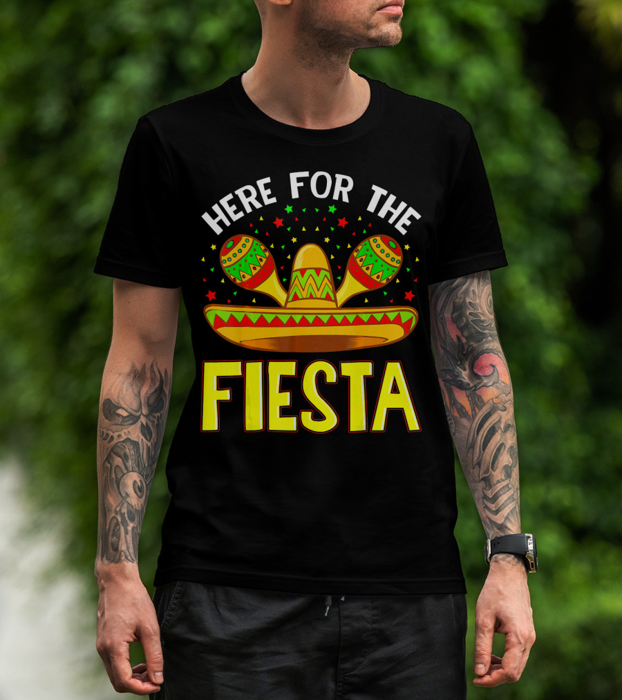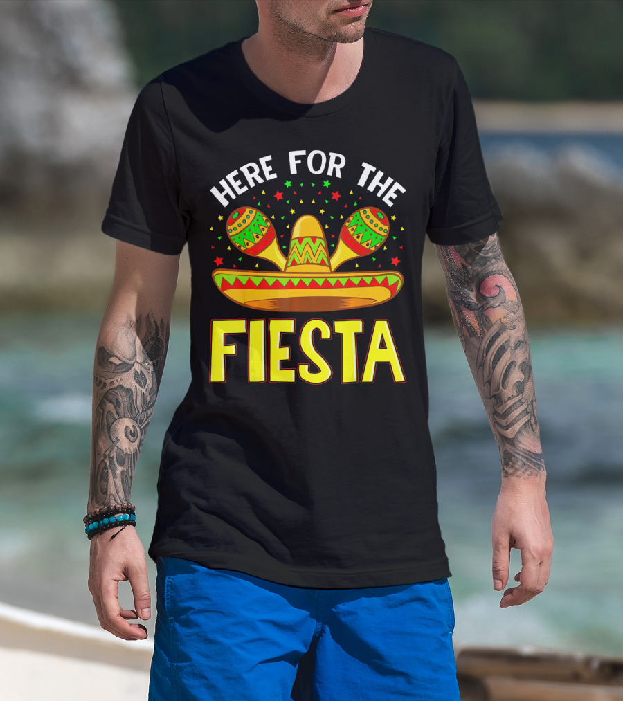Here For The Fiesta Sombrero Maracas Cinco De Mayo T-Shirt