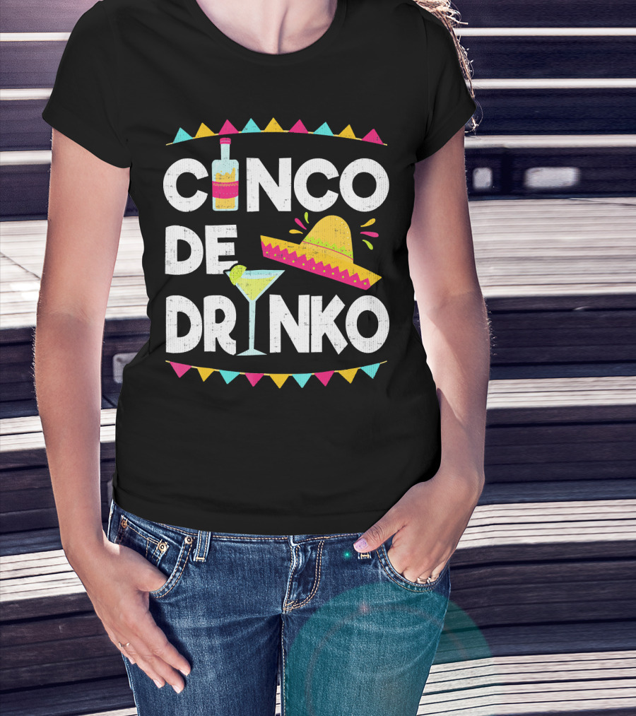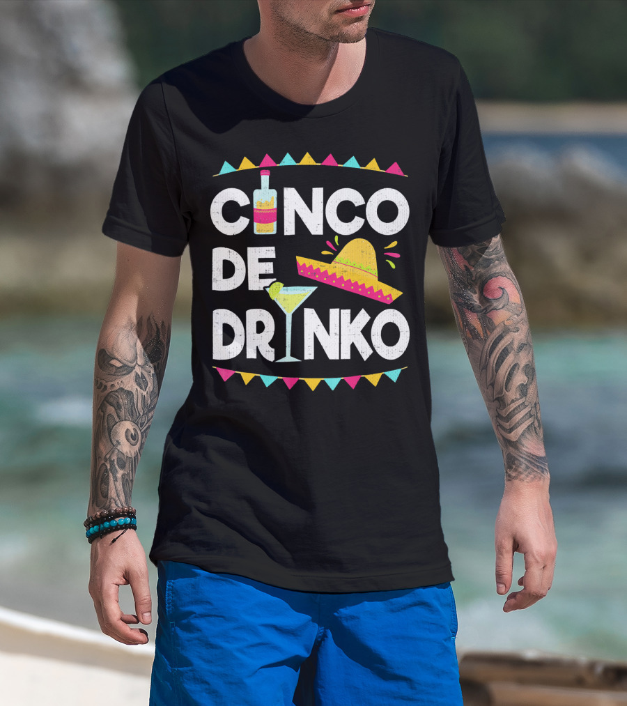 Cinco De Drinko Sombrero And Margarita Fiesta Elements T-Shirt