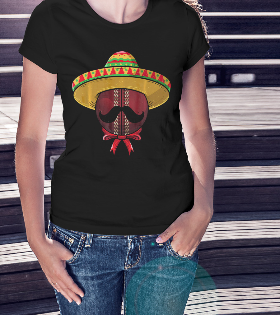 Cinco De Mayo Sombrero Cricket Ball Mustache T-Shirt