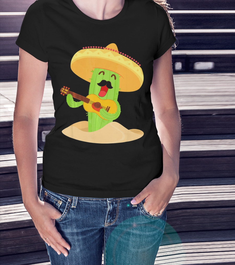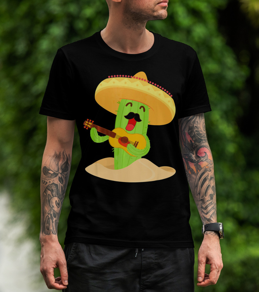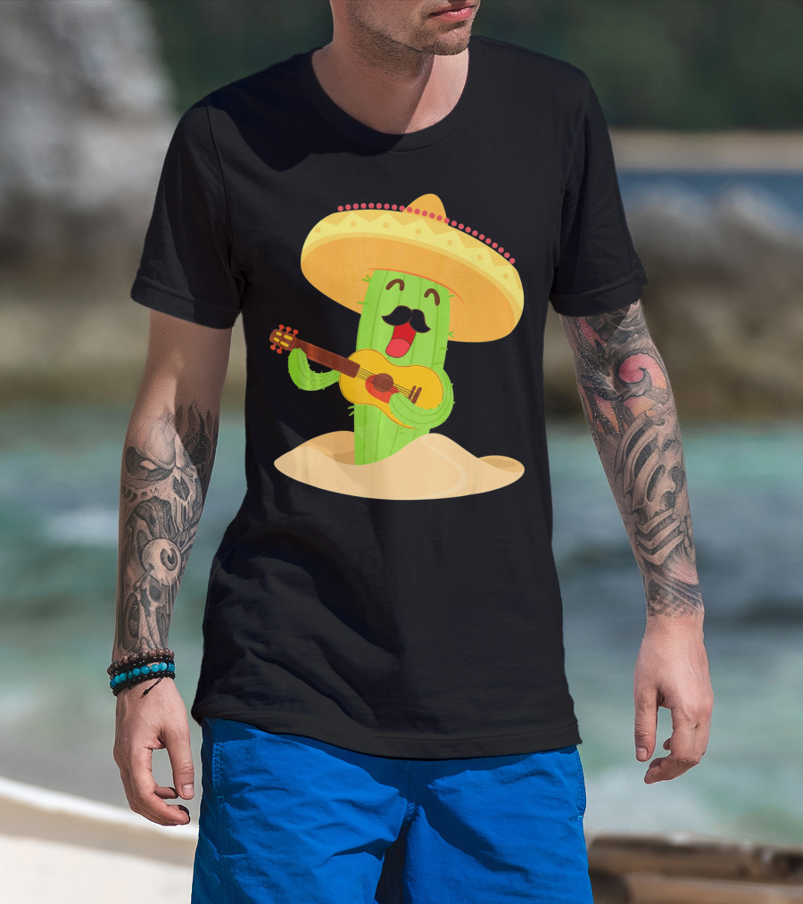 Happy Cinco De Mayo Cactus Guitarist With Sombrero T-Shirt