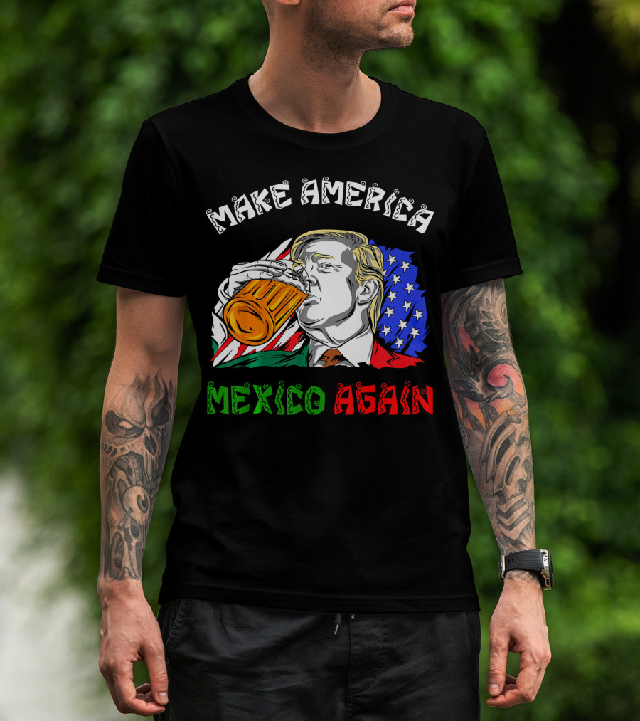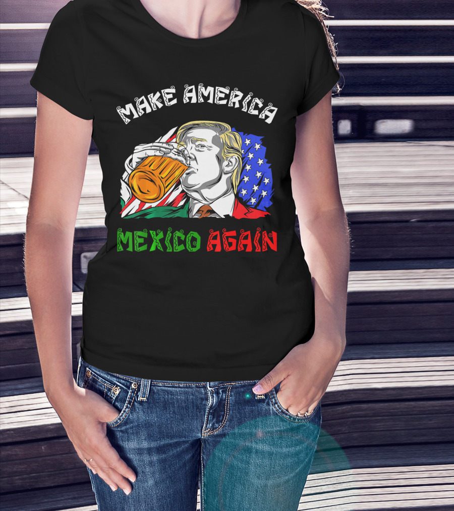 Make America Mexico Again Drinking Beer With U.S. And Mexican Flags T-Shirt