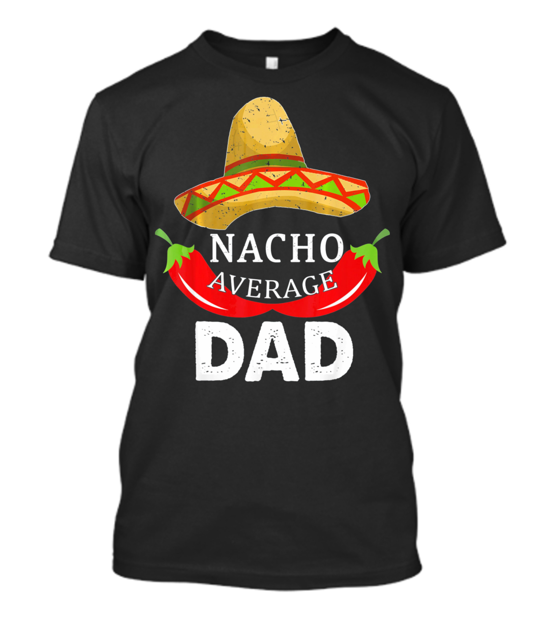 The Nacho Average Dad Funny Cinco De Mayo Sombrero Chili Peppers T-shirt is designed for everyday wear and a consistent fit. Fabric is pre-shrunk ring-spun cotton with durable stitching. See the size chart below for exact measurements.