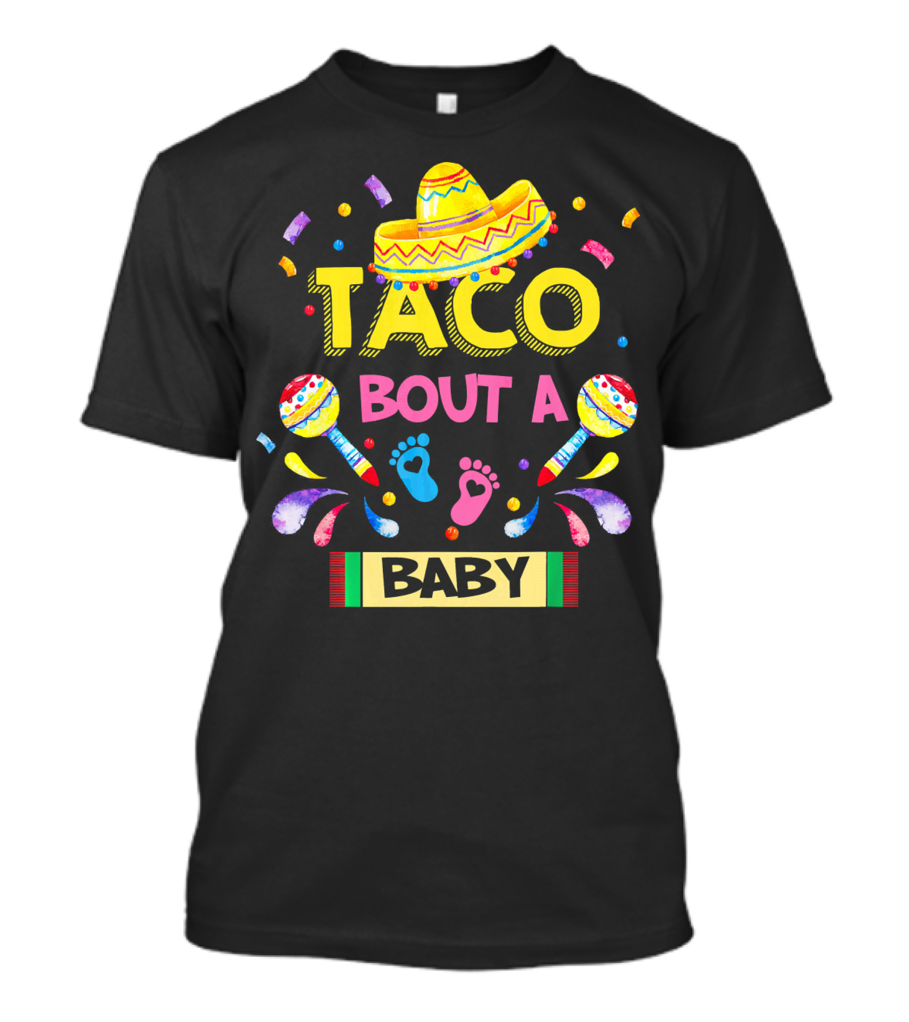 The Taco Bout a Baby Sombrero Maracas Cinco De Mayo T-shirt is designed for everyday wear and a consistent fit. Fabric is pre-shrunk ring-spun cotton with durable stitching. See the size chart below for exact measurements.