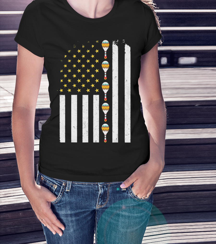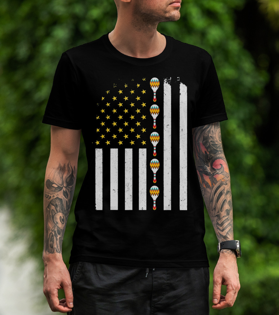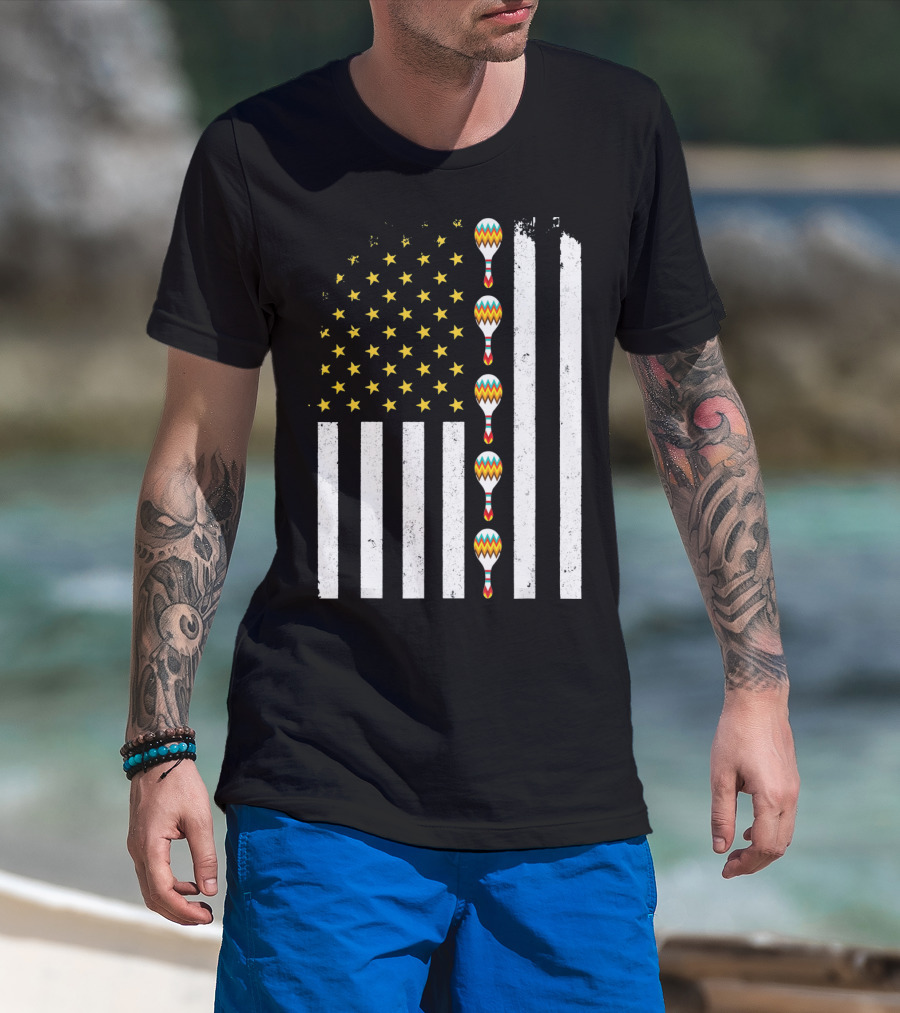 Cinco De Mayo Vintage American Flag With Maracas T-Shirt