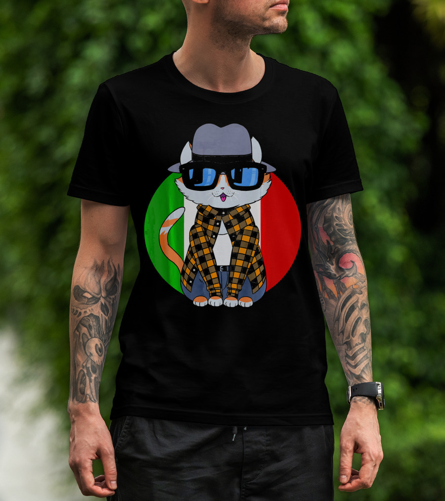Cinco De Mayo Mexican Kitty Cat With Sunglasses And Plaid Shirt In Front Of Tricolor Circle T-Shirt