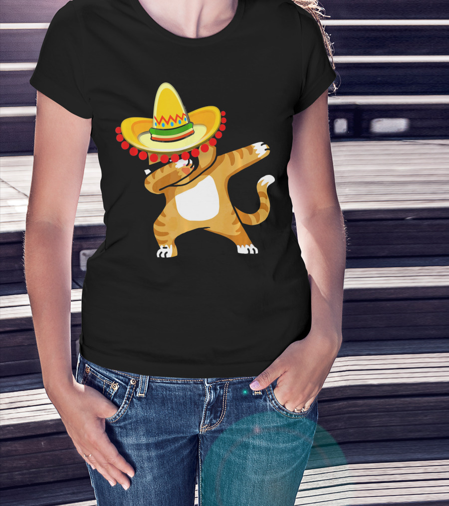 Cinco De Mayo Cat Dabbing Sombrero Fun T-Shirt