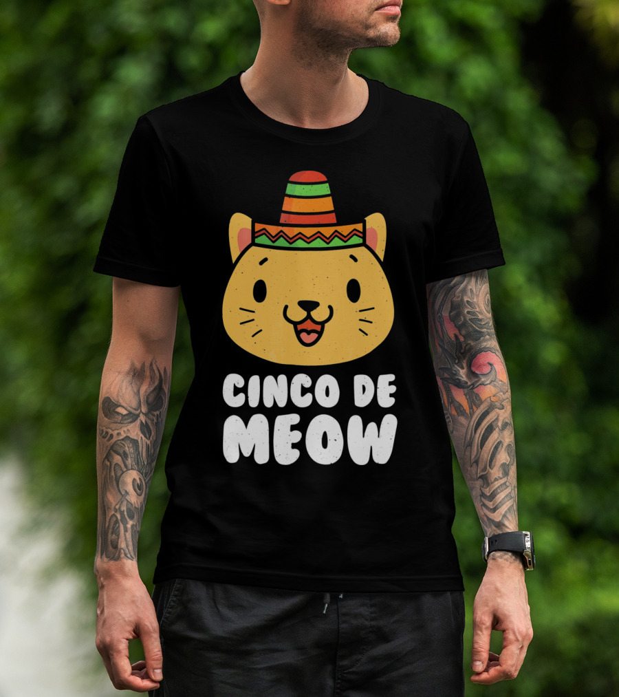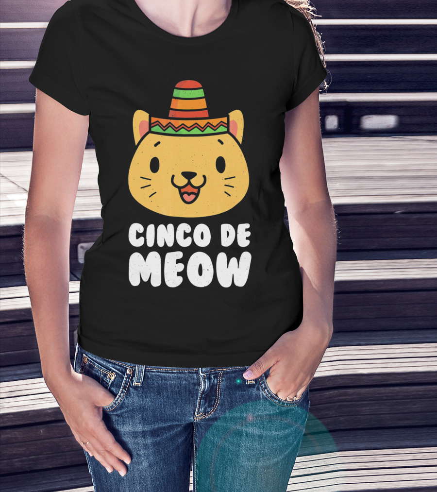 Cinco De Meow Funny Cat With Sombrero Cinco De Mayo T-Shirt