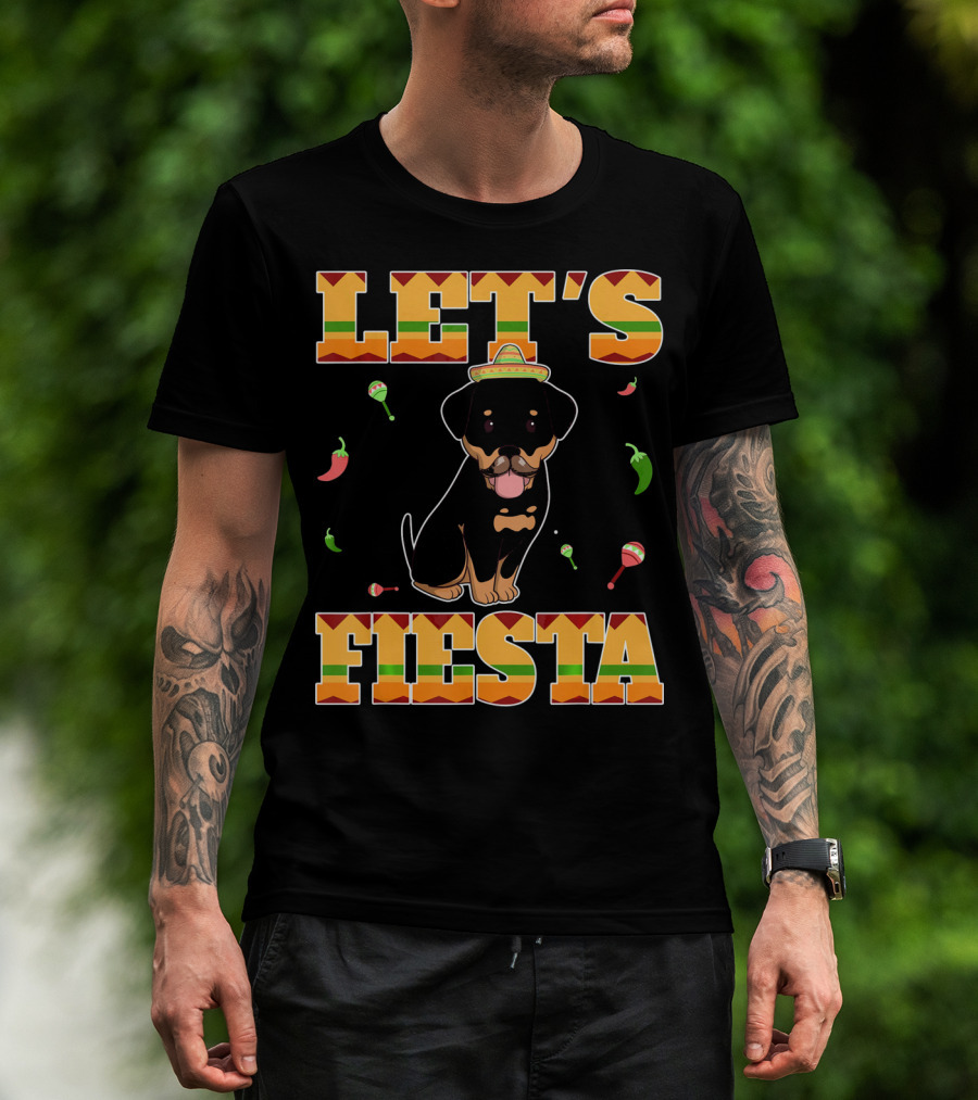 Let's Fiesta Rottweiler Dog Sombrero Peppers Maracas Cinco De Mayo T-Shirt