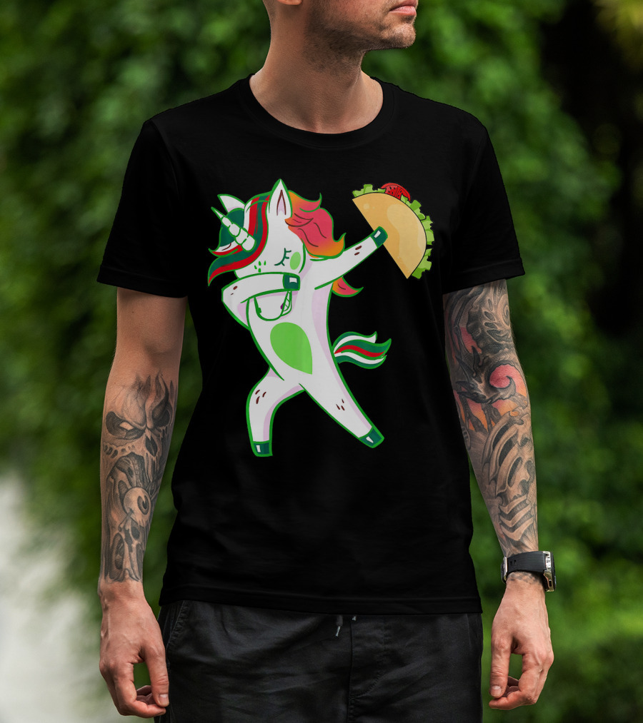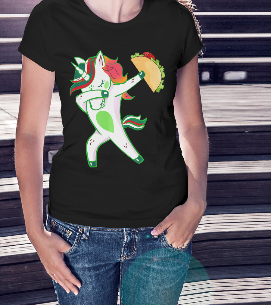 Unicorn Dabbing With Taco And Food Fun T-Shirt