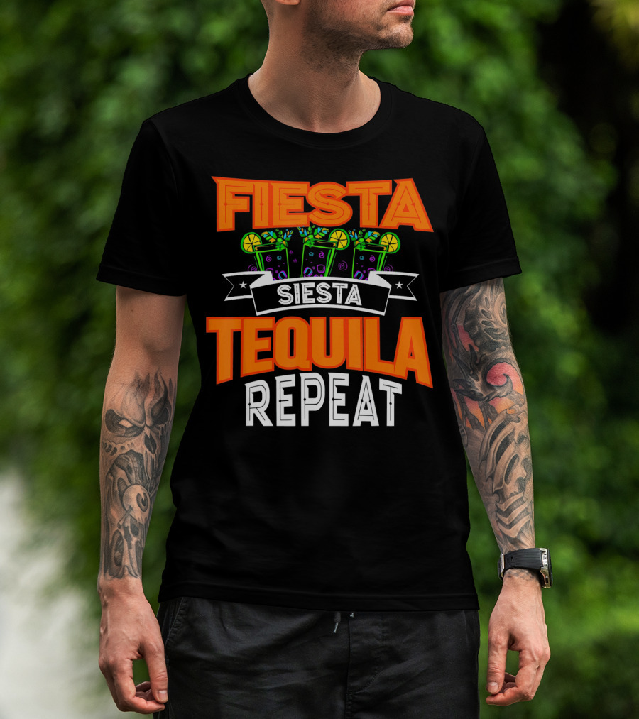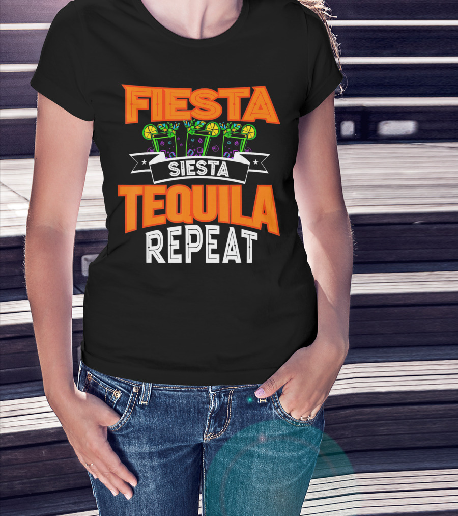 Fiesta Siesta Tequila Repeat Drinker Cin Colorful Margarita Glasses Lime Party T-Shirt