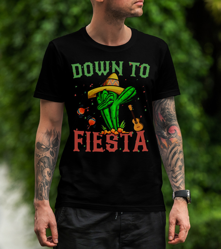 Down To Fiesta Dabbing Cactus Sombrero Maracas Guitar Cinco De Mayo T-Shirt