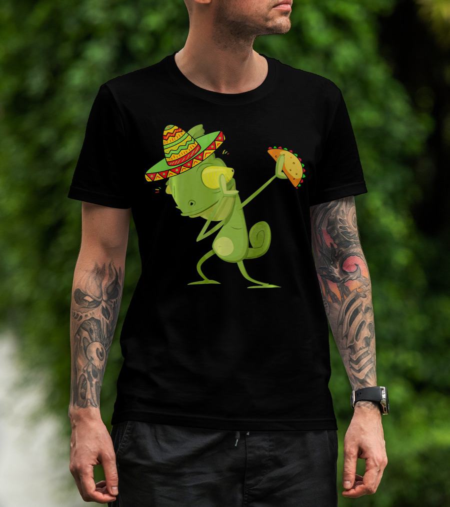 Funny Lizard Dabbing Sombrero Taco Cinco De Mayo T-Shirt