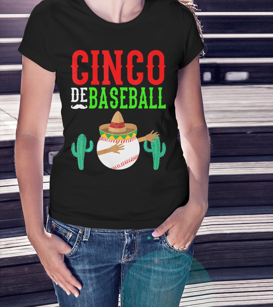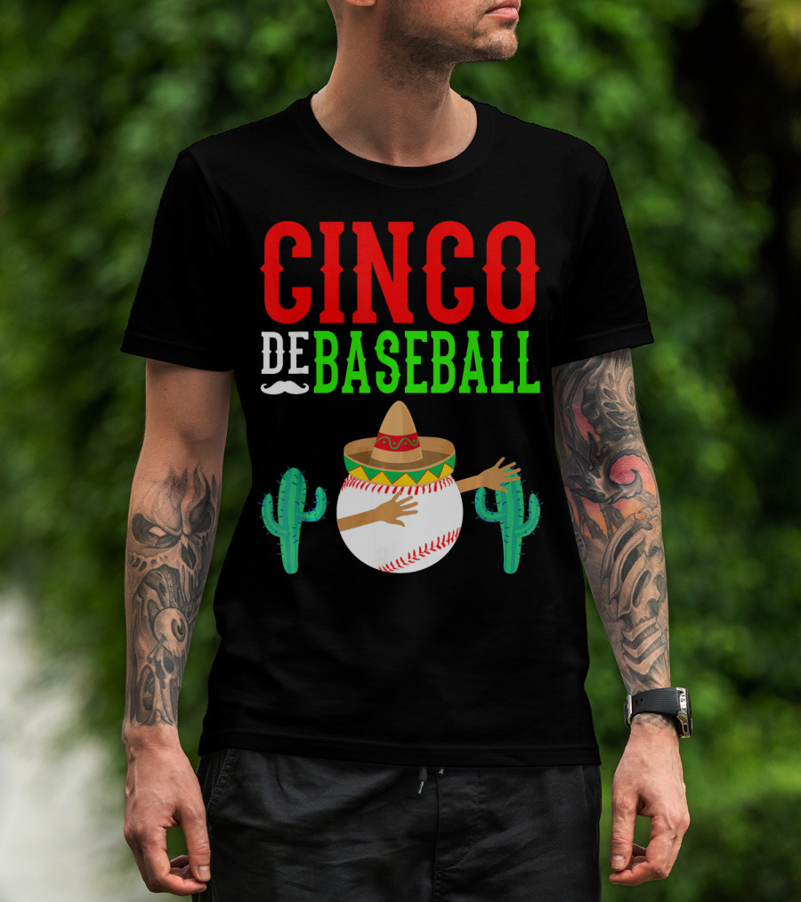 Cinco De Baseball Funny Dabbing Mex Sombrero Cactus T-Shirt