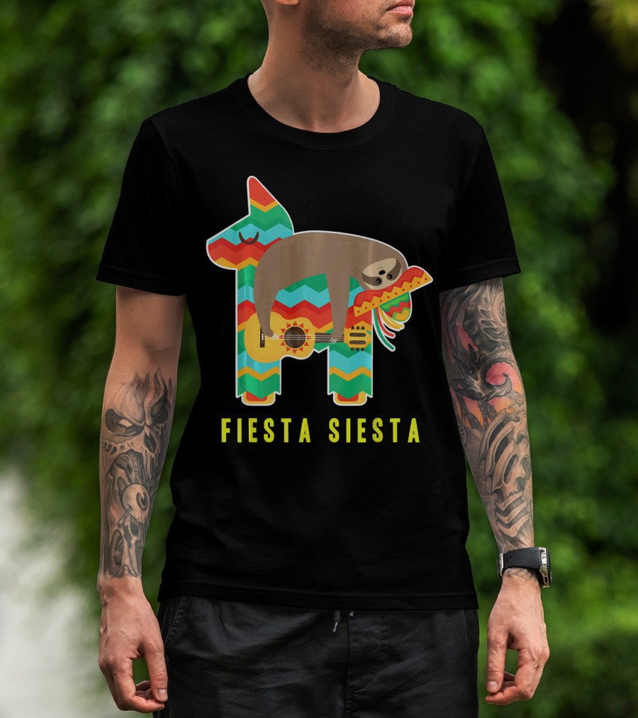 Fiesta Siesta Pinata Sloth Sombrero Guitarra T-Shirt