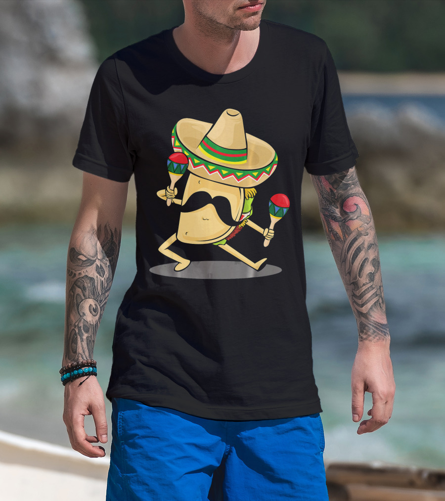 Cinco De Mayo Funny Taco Dancing Sombrero With Maracas T-Shirt
