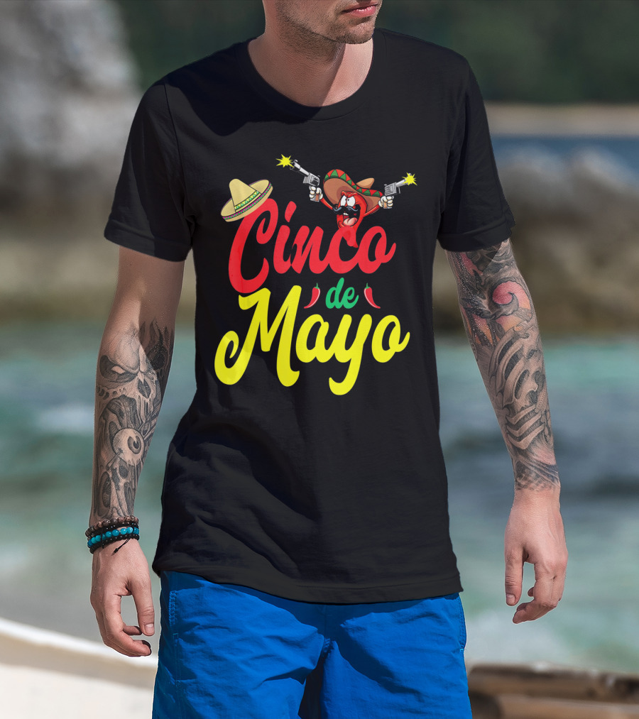 Cinco De Mayo Mexican Party Fiesta Sombrero Chili Pistols T-Shirt