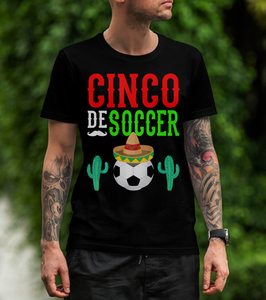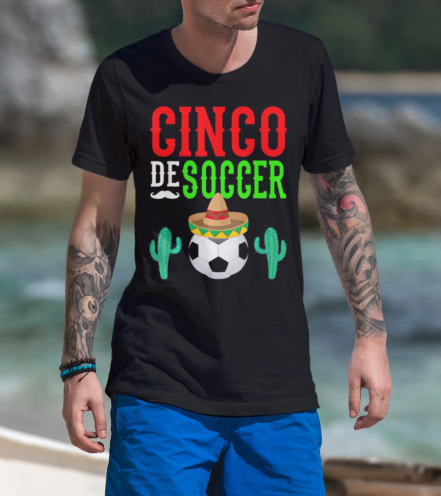Cinco De Soccer Funny Mexico Sombrero Cactus T-Shirt