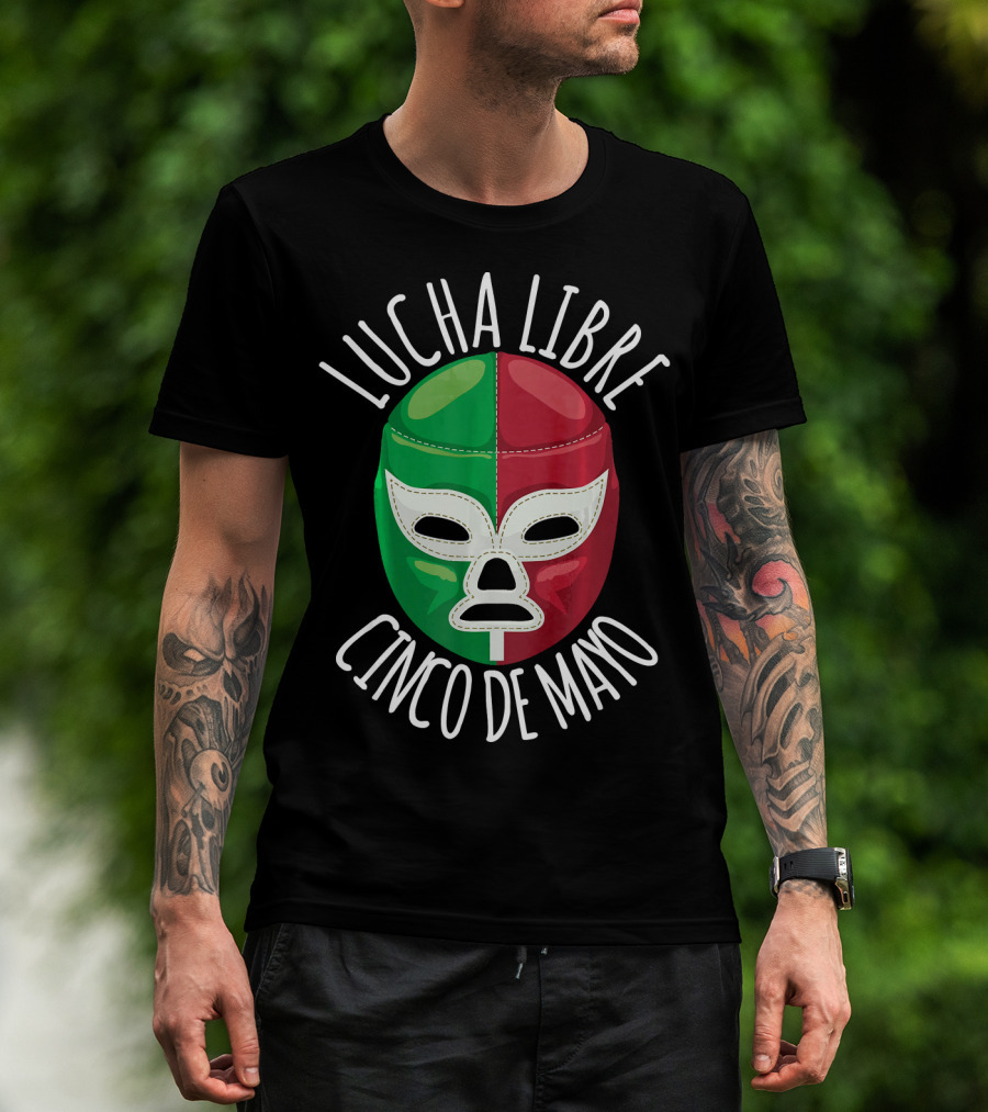 Lucha Libre Cinco De Mayo Wrestling Mask Mexican Flag Colors T-Shirt