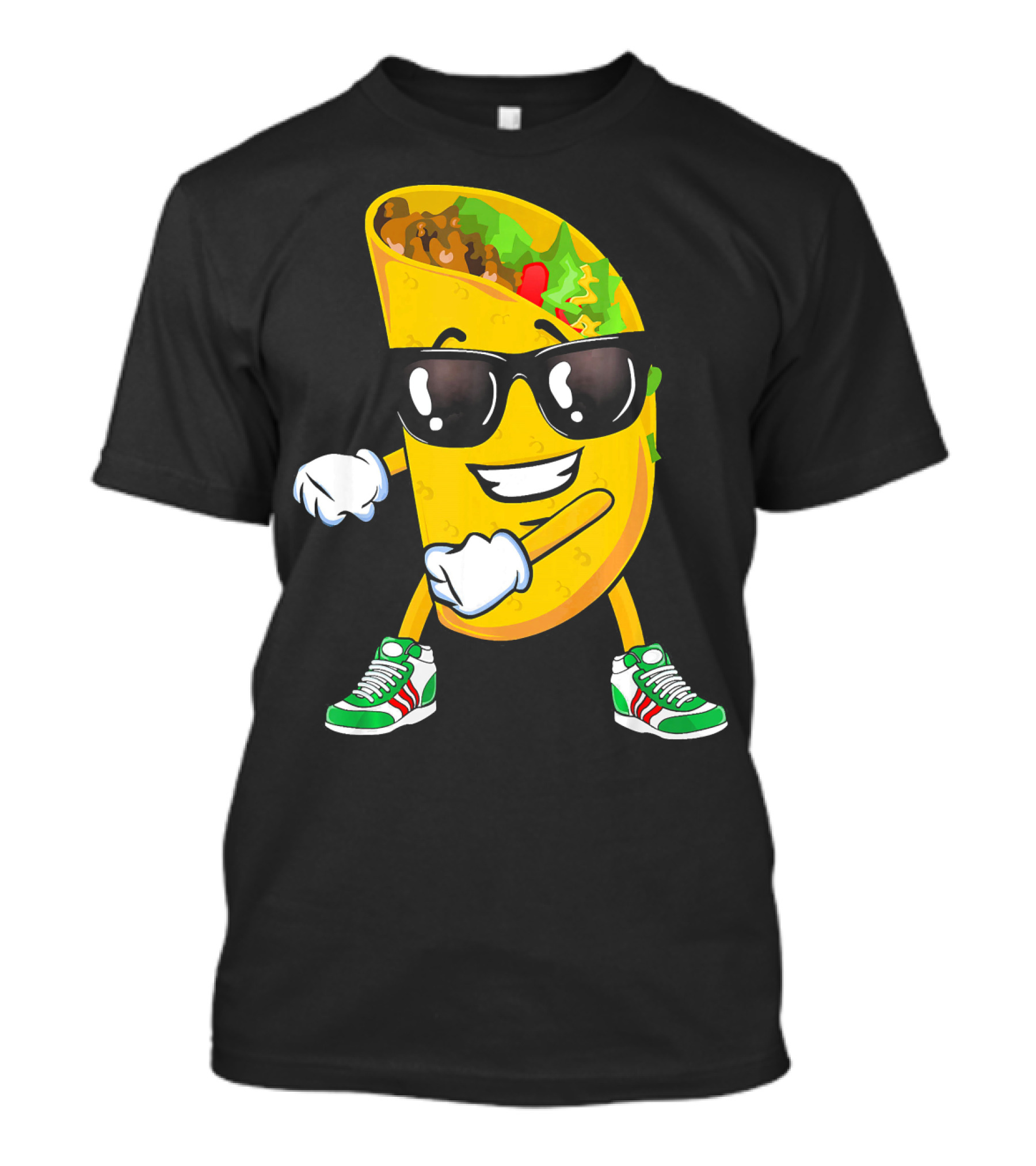 The Flossing Taco Floss Like A Boss Sunglasses Cool Moves Sneakers T-shirt is designed for everyday wear and a consistent fit. Fabric is pre-shrunk ring-spun cotton with durable stitching. See the size chart below for exact measurements.