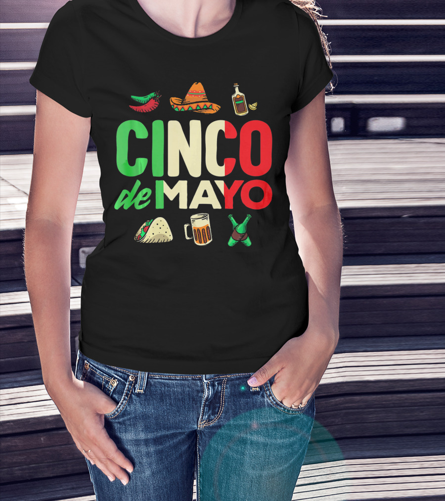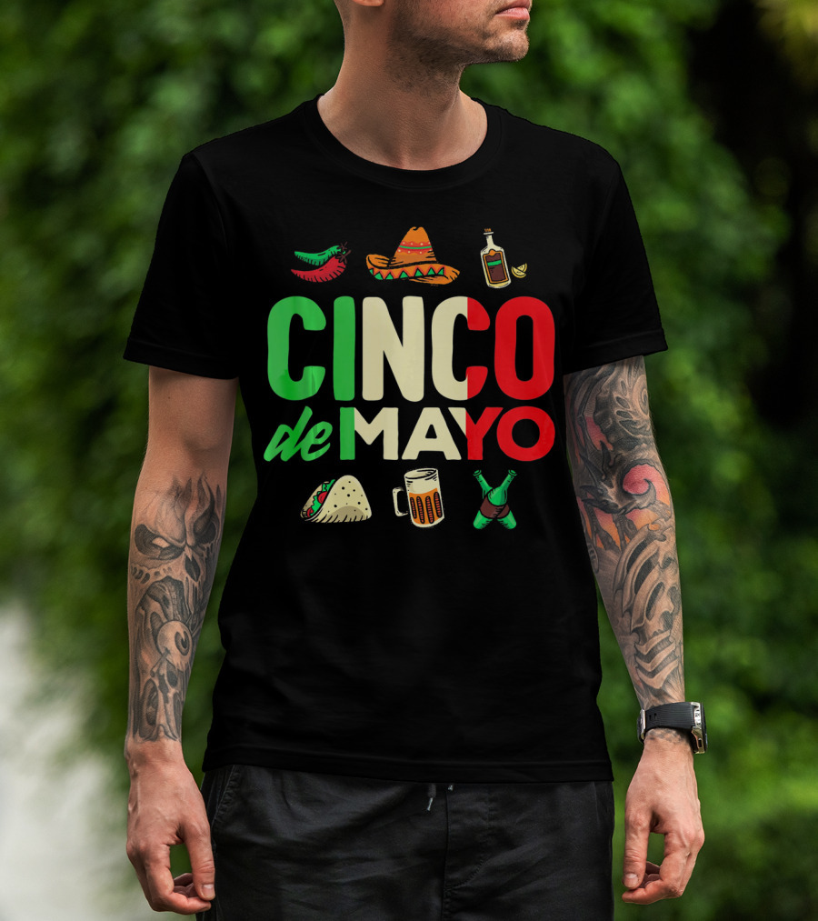 Cinco De Mayo Fiesta Sombrero Taco Beer Bottle Peppers T-Shirt