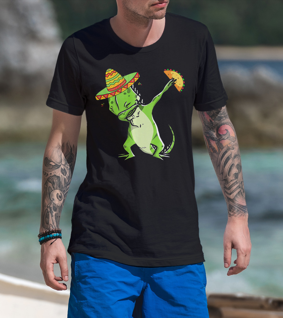 Cinco De Mayo Iguana Dabbing With Taco And Sombrero T-Shirt