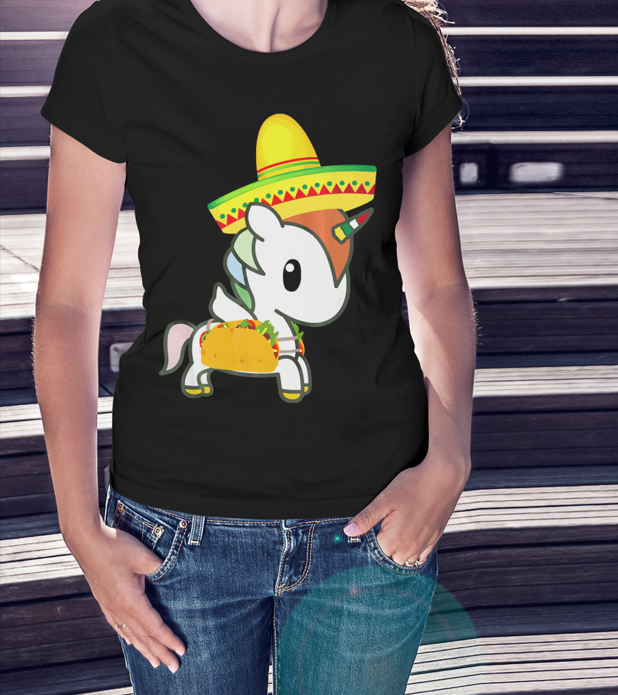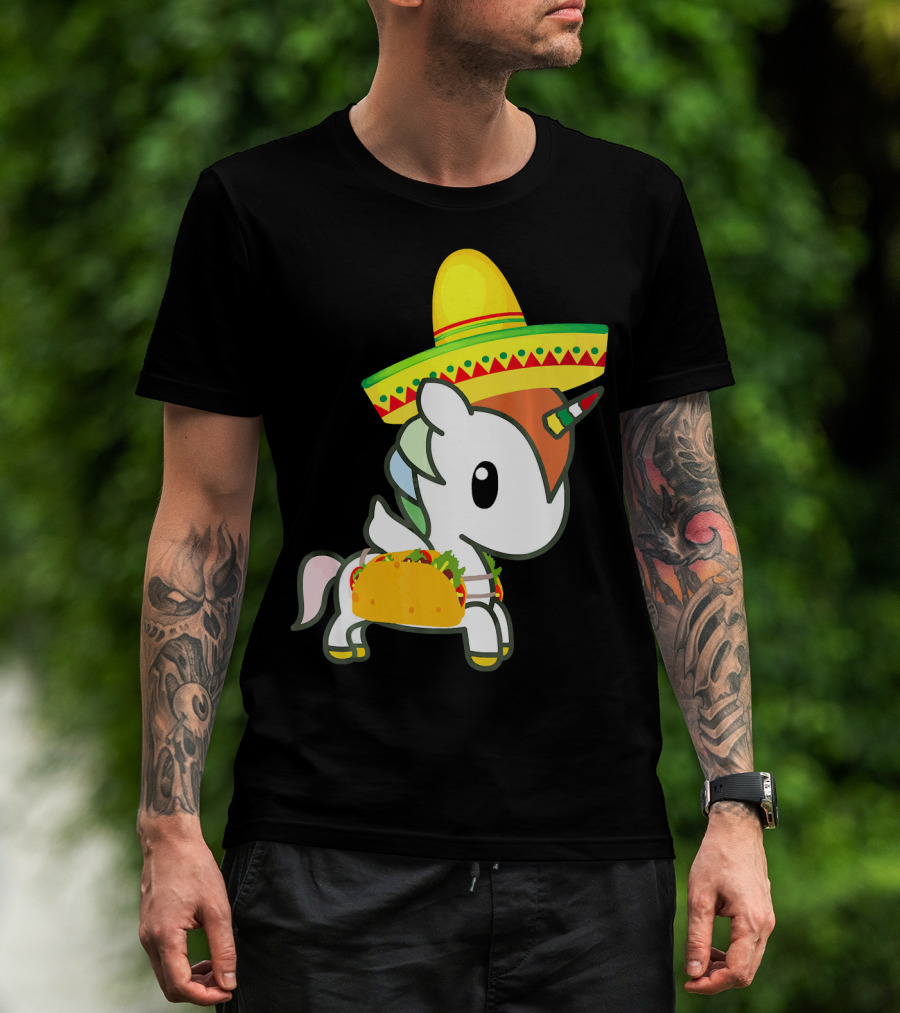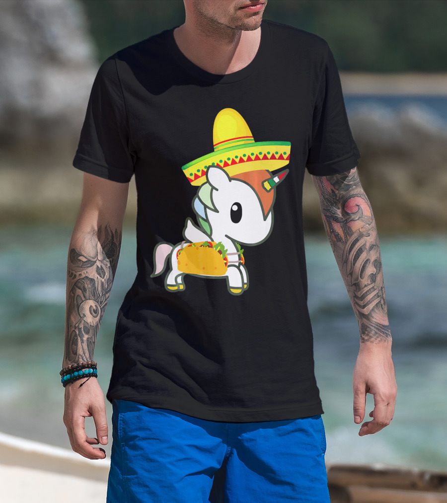 Chibi Cinco De Mayo Unicorn Wearing Sombrero Taco T-Shirt